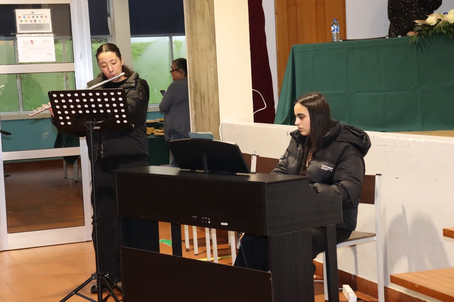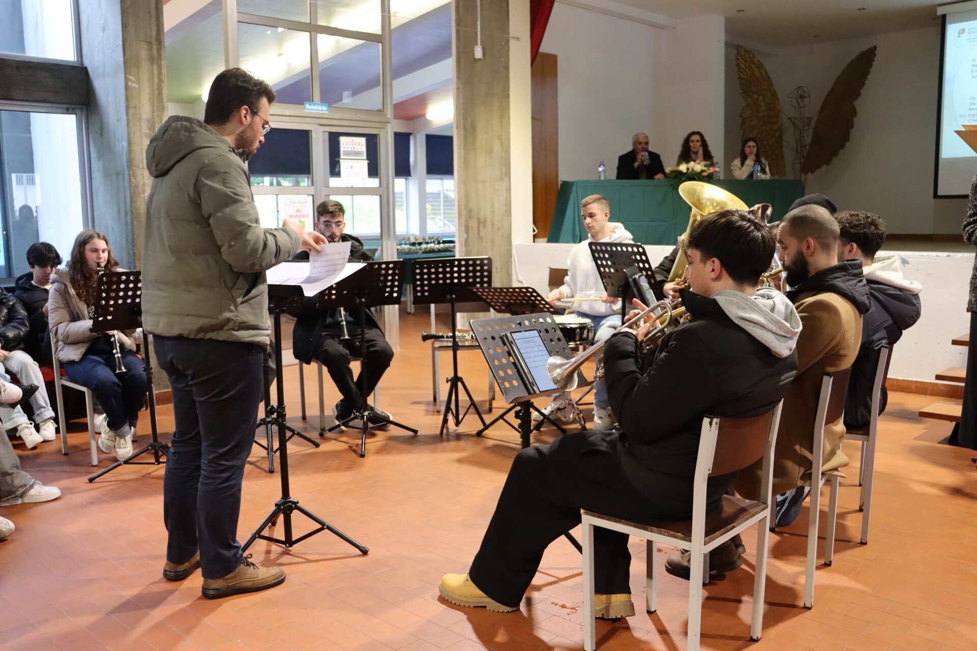 O programa contou ainda com diversos momentos musicais, protagonizados pelos alunos do curso profissional de Instrumentista de Sopro e Percussão, bem como pelo coro constituído por professores e funcionários da escola, que contribuíram para enriquecer e abrilhantar a celebração.